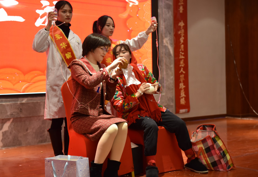 接下来是文艺汇演,由生殖中心《我和我的祖国》大合唱拉开序幕,激昂深情的表达了对祖国热爱,事业发展部的手语舞《不放弃》,那种韧劲带动了全场,感染了全场,妇产科的《知否知否》唱出了医师的挚守和追求,由行政、后勤、导诊的朗诵《感恩有你,我们医路同行》掀起了晚会的高潮,将汇恩人奋勇拓荒,汇恩人济世康民,汇恩人敢为人先的精神抒发的淋漓尽致,慷慨激昂。现场观众热情互动,积极呼应,晚会气氛异常热闹,各种表演精彩纷呈。年会在温馨、欢乐的气氛中圆满结束。